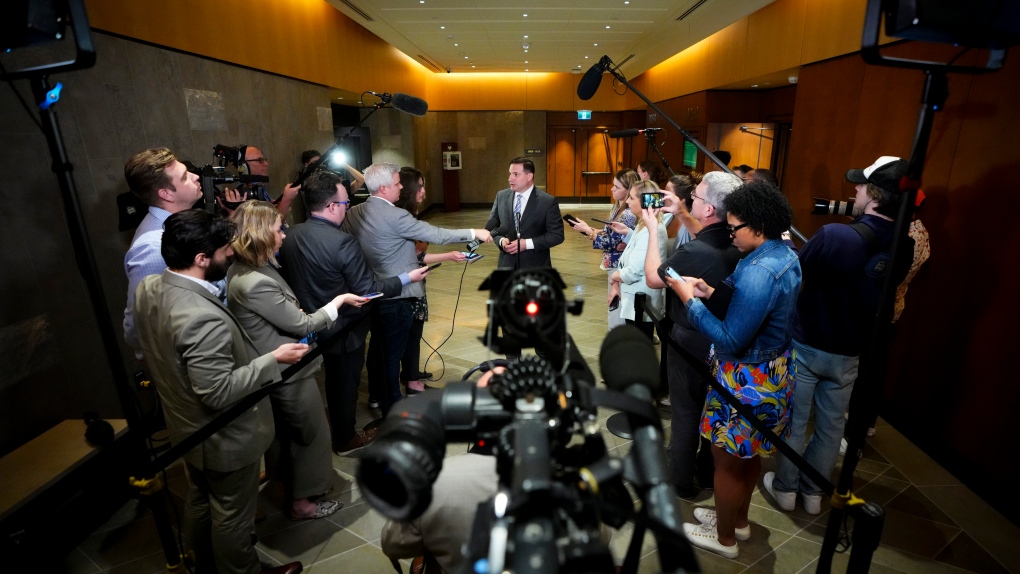 Le ministre de la Sécurité publique Marco Mendicino fait une déclaration après avoir comparu comme témoin devant un comité permanent de la Chambre des communes sur la Colline du Parlement à Ottawa, le jeudi 15 juin 2023. (Sean Kilpatrick / La Presse canadienne)