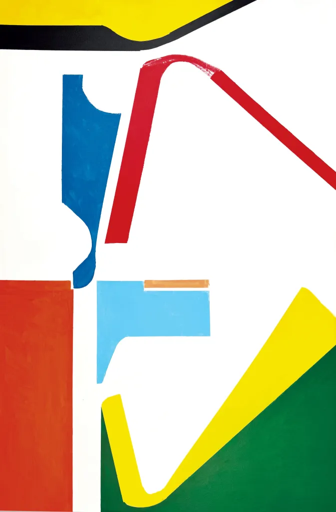 Parmi les plus récentes figurent deux peintures hard-edge, « sa silhouette » et « son équilibre », toutes deux de 60 pouces sur 40 pouces, qui présentent des bandes plates de couleur sur une toile blanche unie dans des proportions à peu près égales. Mais contrairement aux produits hard-edge impersonnels et exécutés avec précision du mouvement des années 1960, les lignes de James ne sont pas parfaites. Les bords confus abondent et, en « équilibre », un arc rouge est réalisé avec un pinceau partiellement sec.