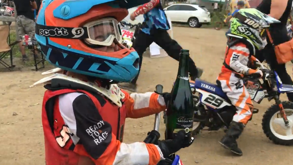 Il dit qu’il a remarqué que son fils aimait la course, alors il lui a acheté une moto tout-terrain de la taille d’un tout-petit avec des roues d’entraînement.